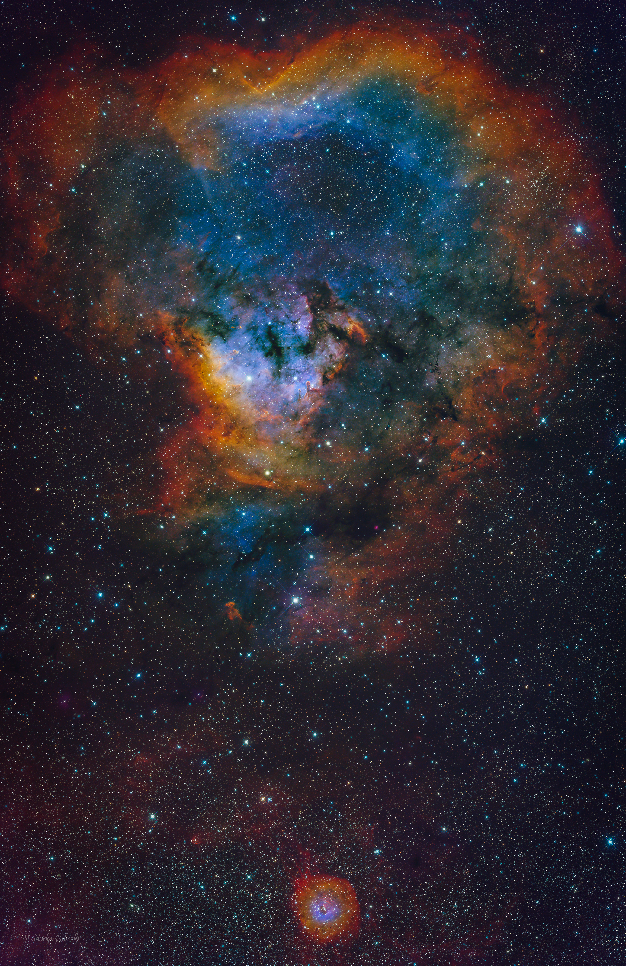 Szerintem határozottan látszik a folyamatos tanulás a fotóidon. Jó volt belenagyítani a képbe és rögtön látszik, hogy még sok kísérletezési lehetőség van a nyersanyagban. A két kép közül nekem a SHO kép tetszik jobban már a szín világa miatt is. Érdemes lenne RGB csillagnélküli verziót is megnézni, illetve sokkal szűkebb vágásokkal komponálni, mert szép részletes a fotó. Gratulálok hozzá!