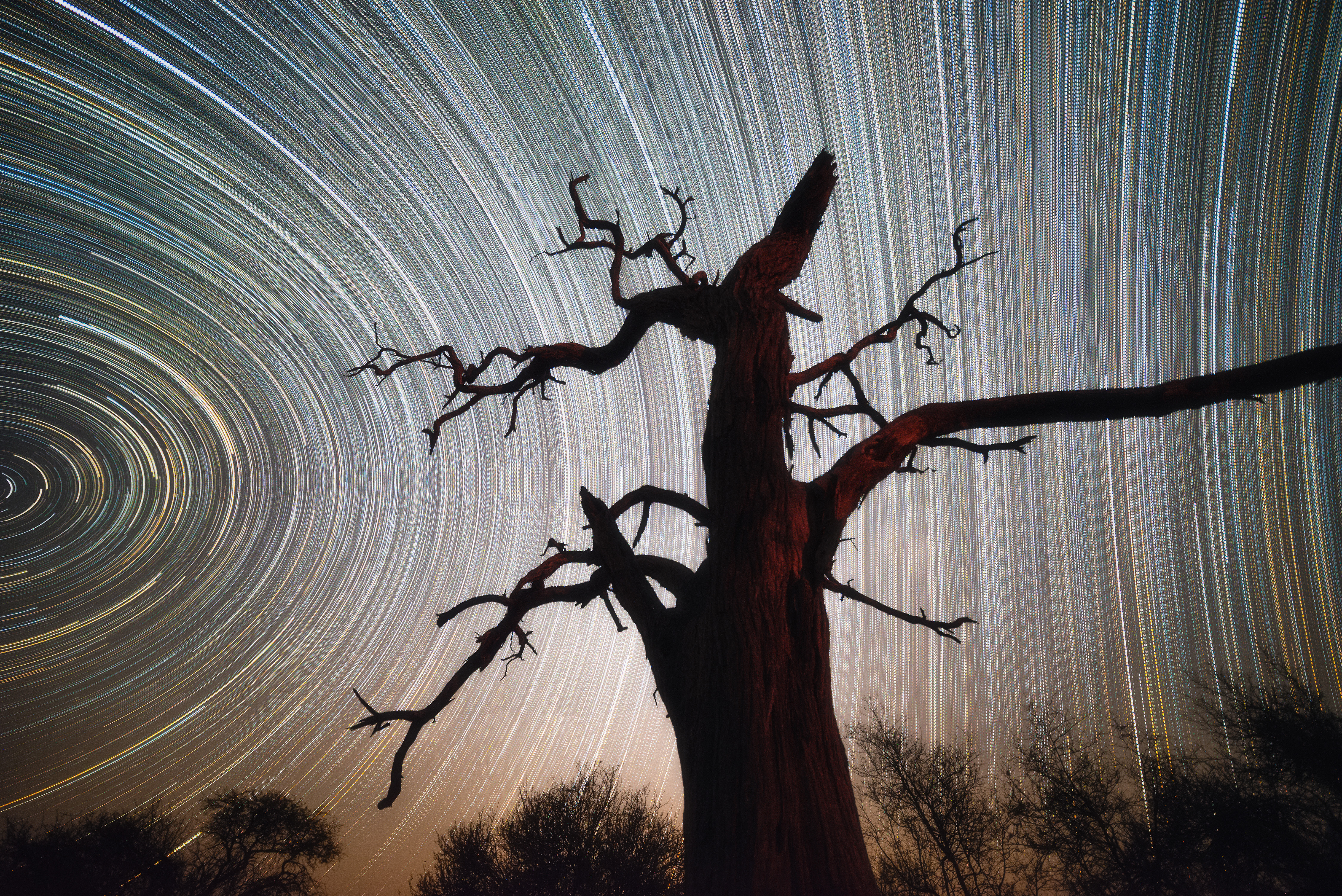 Éjszakánként míg a távcsövek dolgoztak, különböző helyekre raktuk ki a fényképező gépeket és különböző tájelemekkel készítettünk csillaghúzós képeket. Első ilyen jellegű képem. Építő jellegű visszajelzéseket szívesen várok!