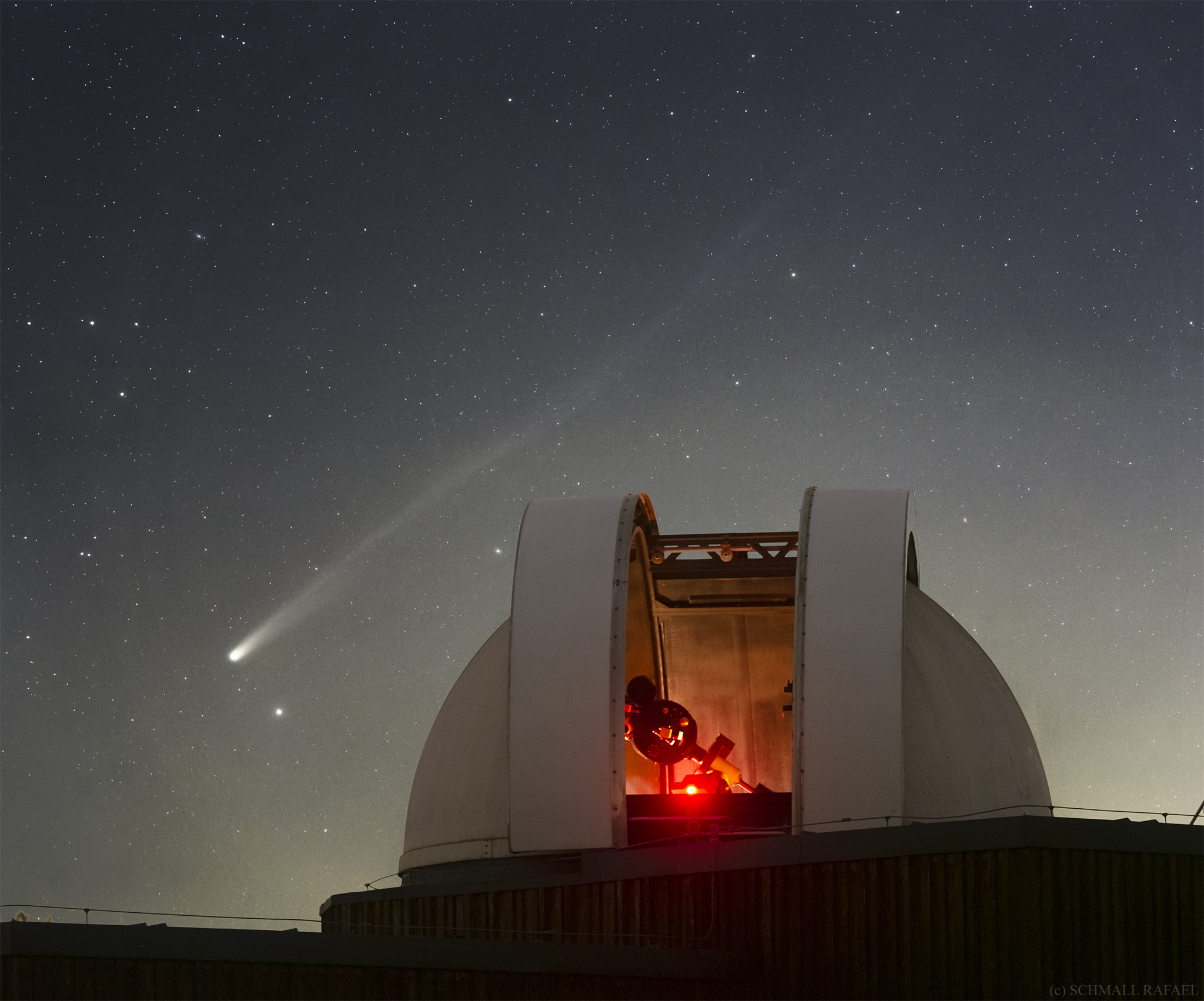 A felvétellel addig bíbelődtem kint az éjszakában, amíg sikerült néhányat balra lépni és letenni az állványt, így kicsit a kupolában a távcsőre nem láttam rá jól, ... a távcső amúgyis az üstököst nézte. :D