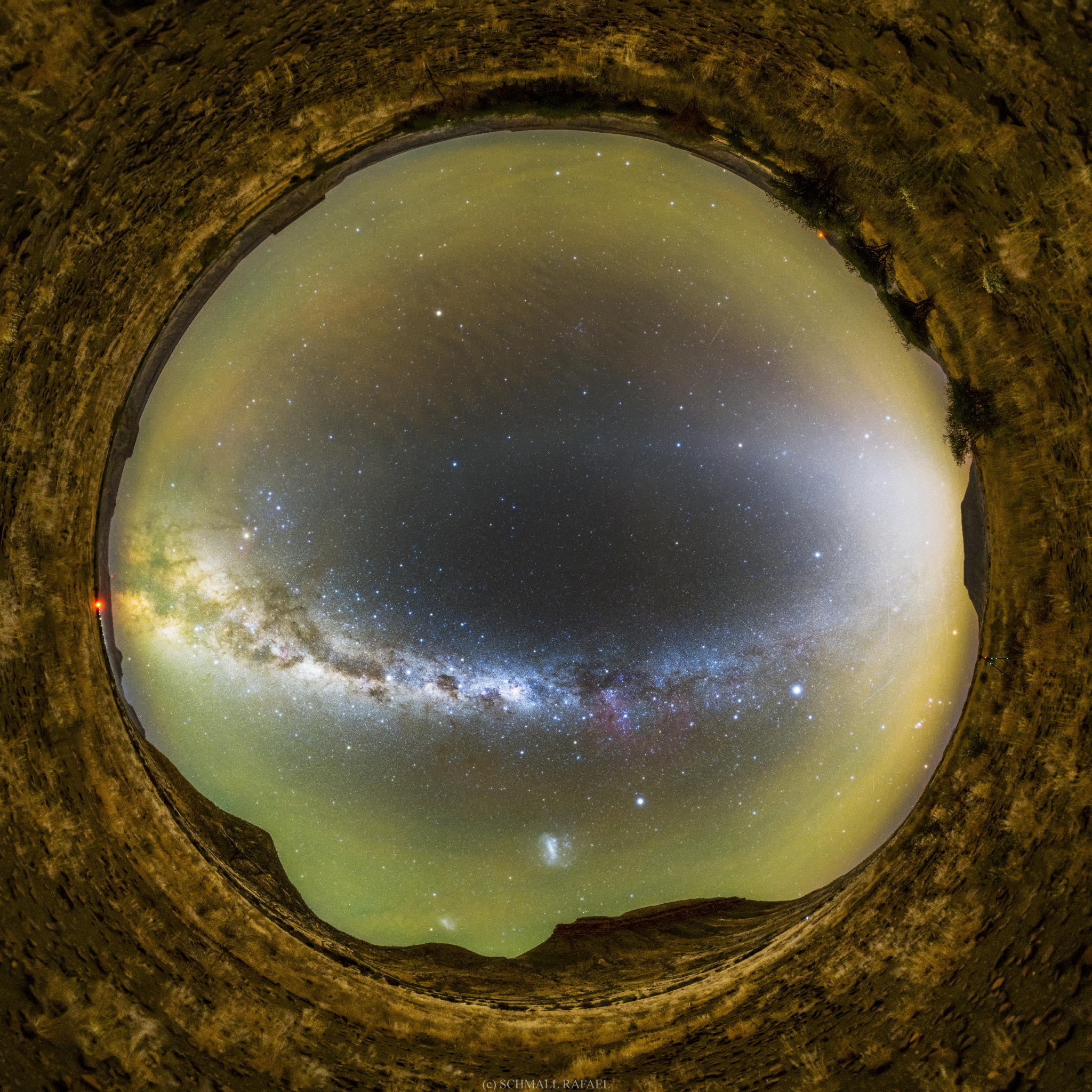 Eme felvételen egy május esti állapot látható Namíbiából. Nagyon nem kell mondanom nektek, hogy mi hol van a képen, de érdekesség lehet a Göncölszekér, az Orion, a légkörfény gravitációs hullámai, valamint az Állatövi fény is.