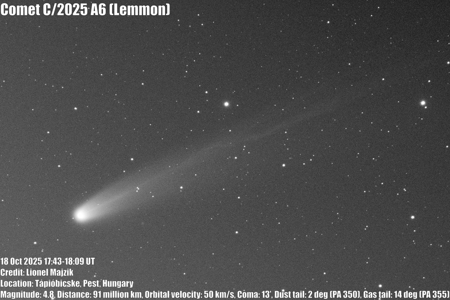 A C/2025 A6 (Lemmon)-üstökös 2025. 10. 18-án