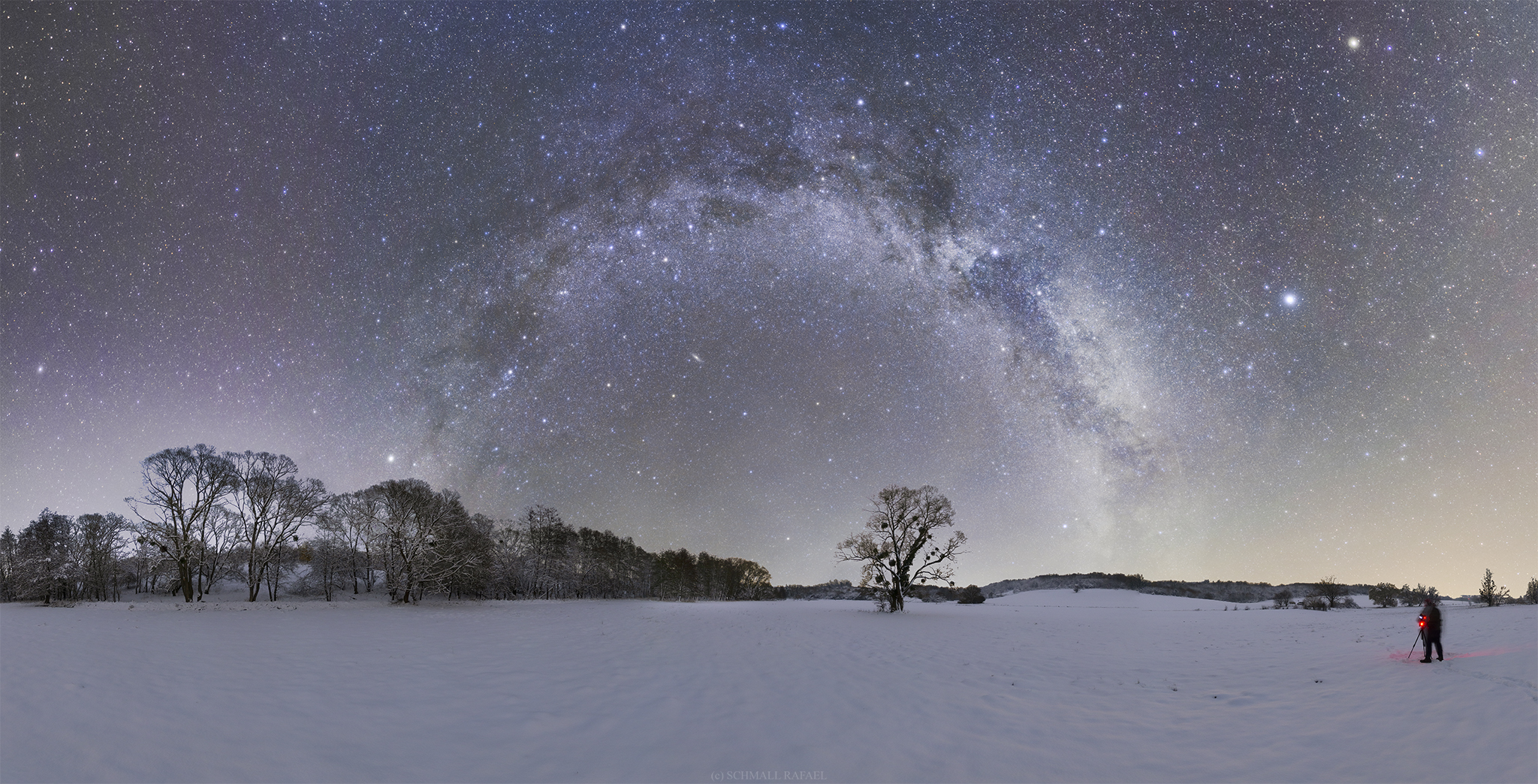Régóta tervben volt egy ilyesfajta felvétel elkészítése, ahol vastag hótakaró felett az őszi-téli csillagképek ragyognak a Tejút sávjával együtt.