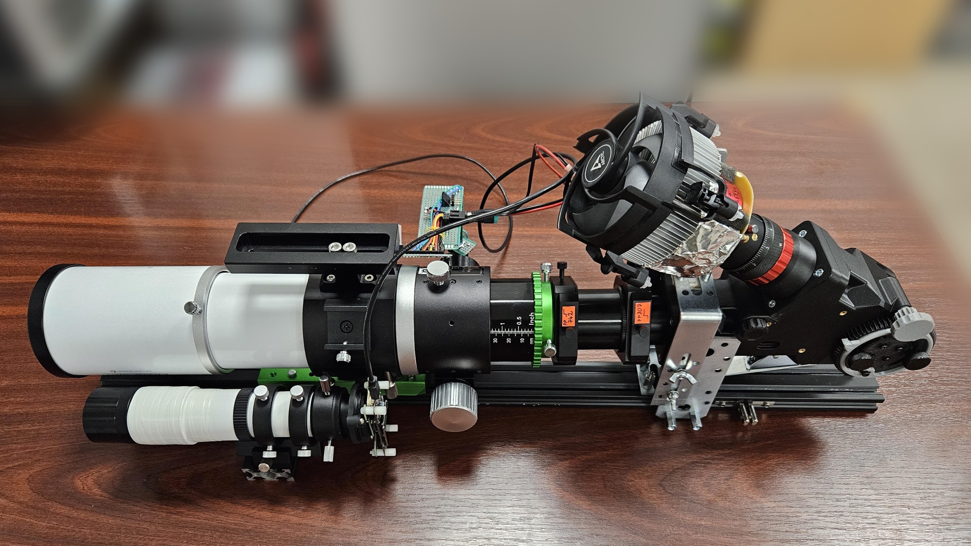 EQ3, saját építésű vezérlővel és ST4 követéssel, spektroheliográf szken-móddal és Nap-autoguiderrel