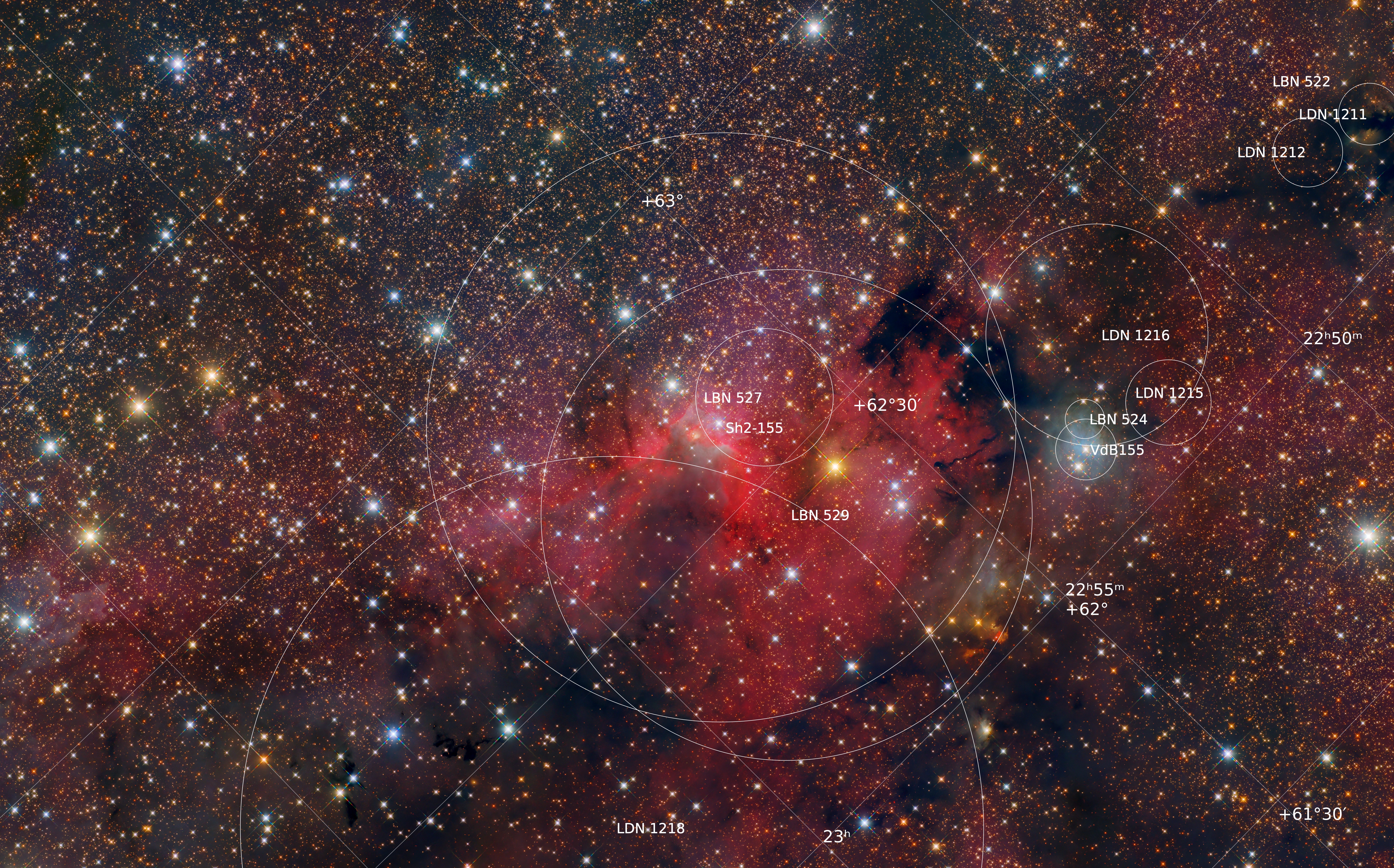 Sh2-155 - Csillagmezős úton a Barlang-köd felé Annotated