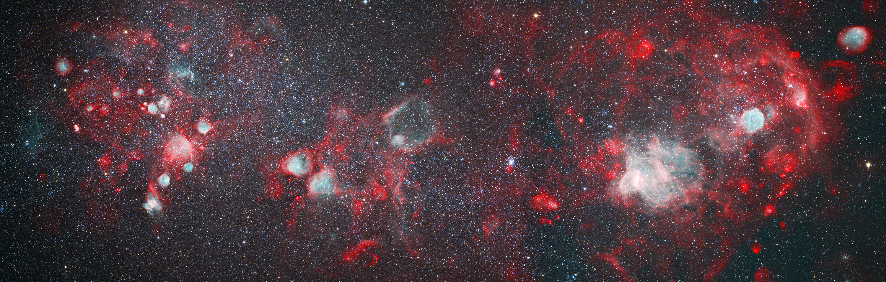 Namíbiai utunk során az egész társaságot a közös fotózással gyötörtem, persze okkal. Sokkal hatékonyabb, mint egyedül nekiállni lefotózni a temérdek érdekességet a déli féltekén. Így csaptunk bele Bercivel a Kis-Magellán-felhő izgalmas "tejútsávjának" lefotózásába. A kép két paneles mozaik, amihez Berci színes ZWO ASI294MC kamerával gyújötte az RGB részt, míg én a mono 2600-assal a Halfát és az OIII-at (meg egy kicsi RGB-t én is). Így kerekedett ki ez a bicolor keskenysáv és RGB fotó, ami az SMC legsűrűbb, legintenzívebb vidékét ábárzolja. Az objektum augusztusban már kedvező helyen volt az éjszaka második felére, mégis 30 fok fölé sem igen kúszott, így elég gyenge lett a nyersnyag, meg nincs is sok belőle, ezért aztán inkább amolyan tájképes jelleggel érdemes nézni, nem kimondottan pixel vadász fotó lett :)