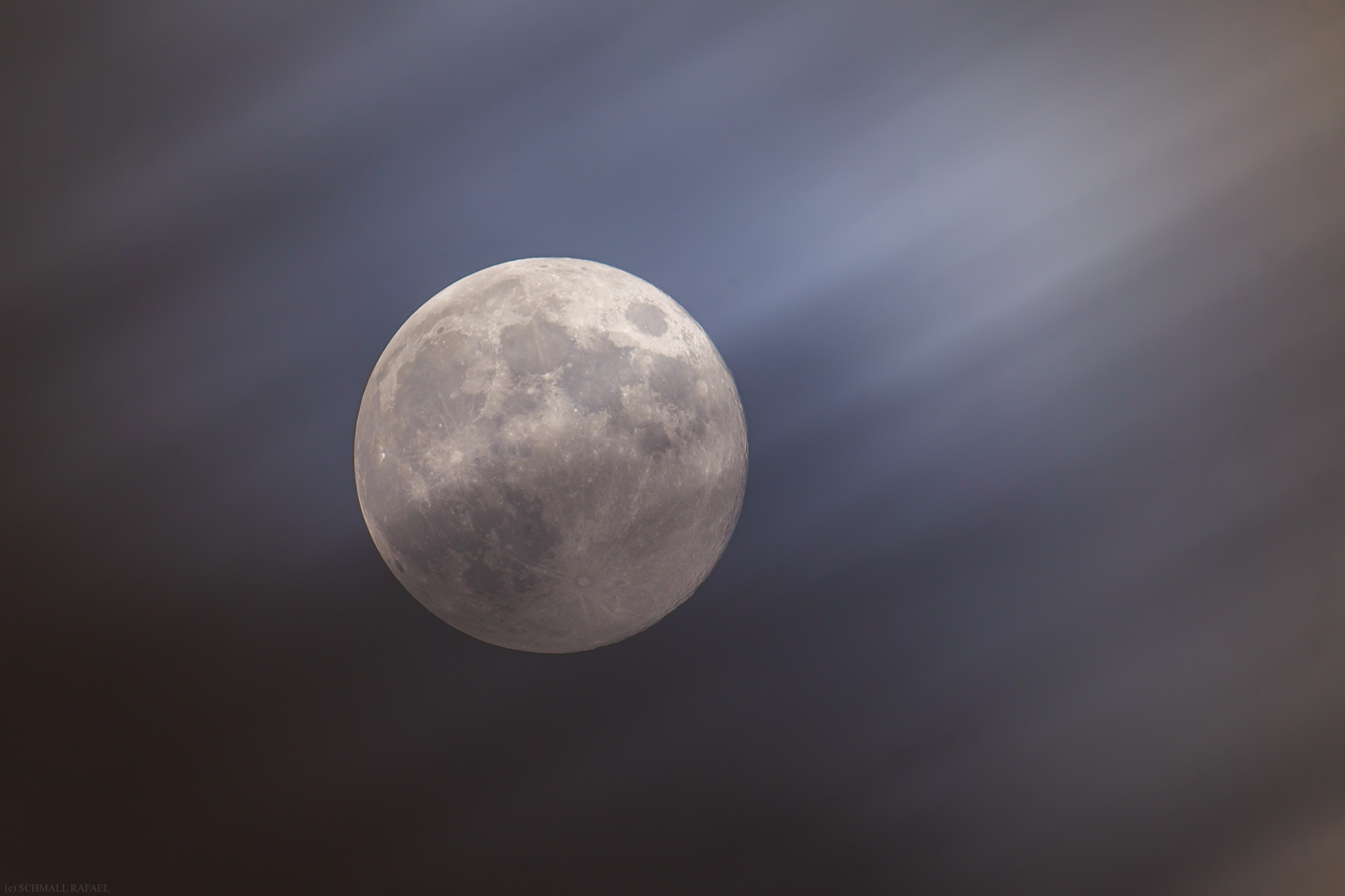 A mozgó felhőzet szép sávosan hagyta a képet 10 másodperc alatt és lehet látni az úgynevezett holdkoszorút is. A holdkorong kissé vöröses a légkör és a feldolgozás miatt is, de szerintem ennyi megengedett. :)