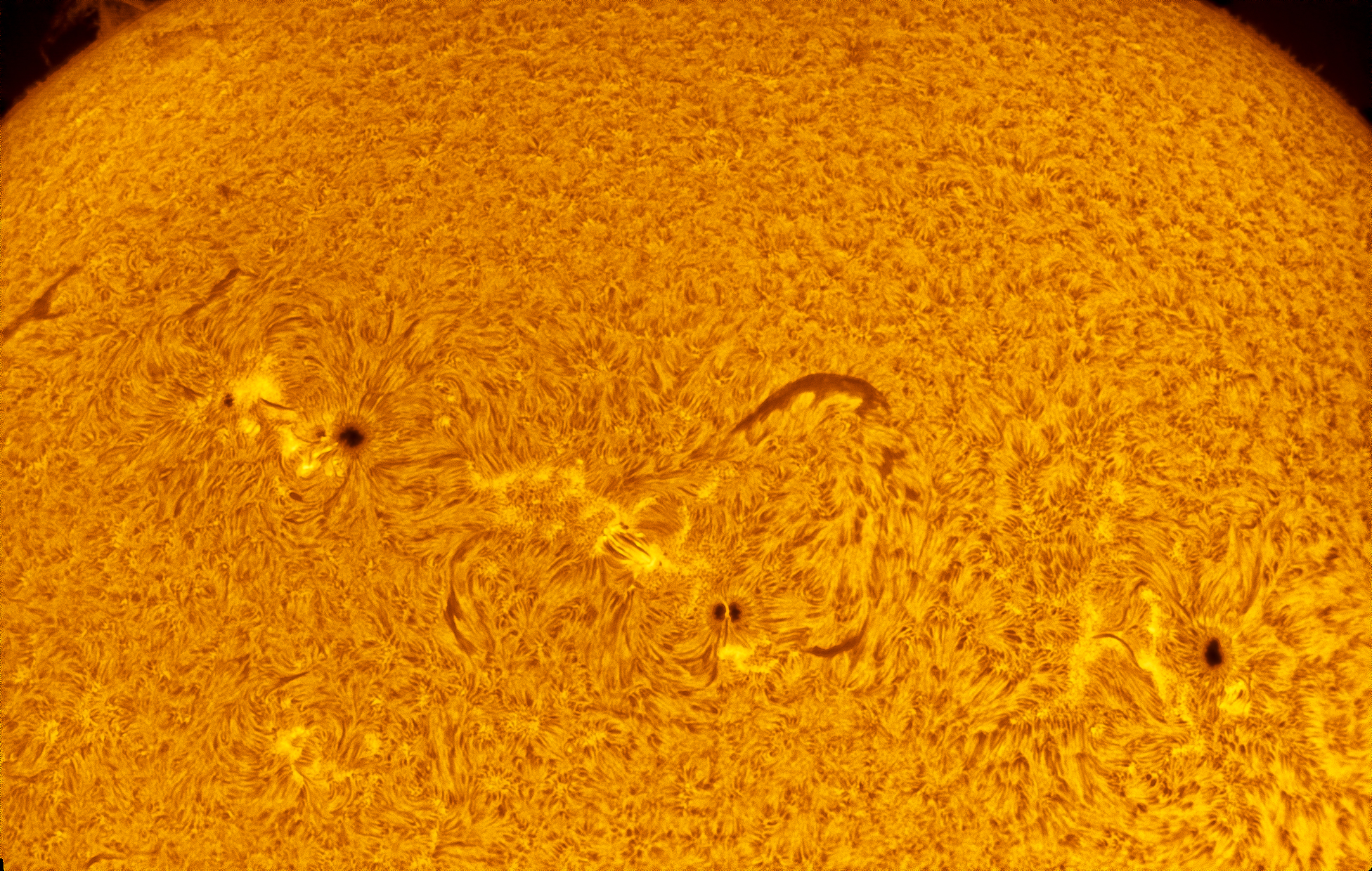 Sziasztok! Valami csoda folytán végre kisütött a nap, így áteshettem a tűzkeresztségen: megvolt a first light az új naptávcsövemmel. Nekem is ez volt az első alkalom, mert még sosem fotóztam a Napot, főleg nem H-alfában. Tákolnom kellett egy kicsit, hogy legyen fókuszom, de már úton vannak a megfelelő adapterek. A levegő nagyon párás volt... egy szó mint száz, gondoljatok ide még pár kifogást, hogy miért olyan a kép, amilyen.