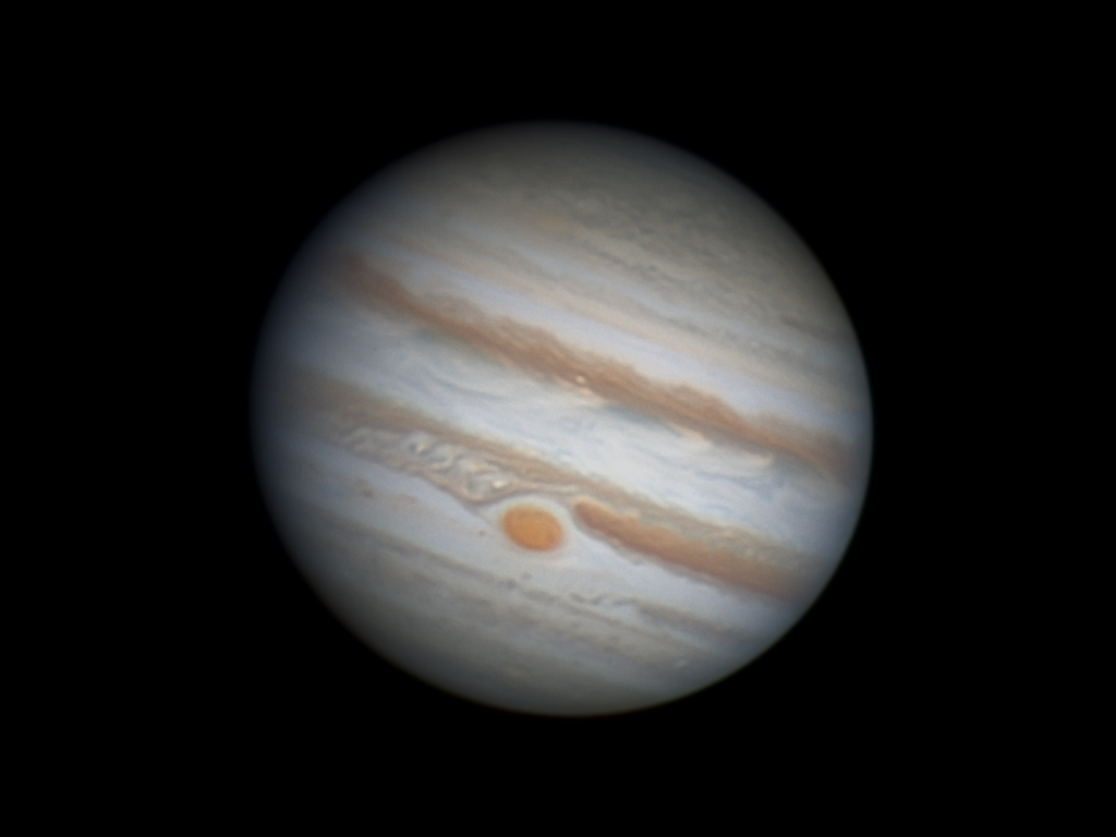 A GRS március 16-án este nagyon jó pozícióban volt a fotózáshoz. Átlagos vagy inkább rossznak mondható volt a seeing. 6percnyi adatot dolgoztam fel mindösszesen, ez volt talán a legnyugodtabb periódus.