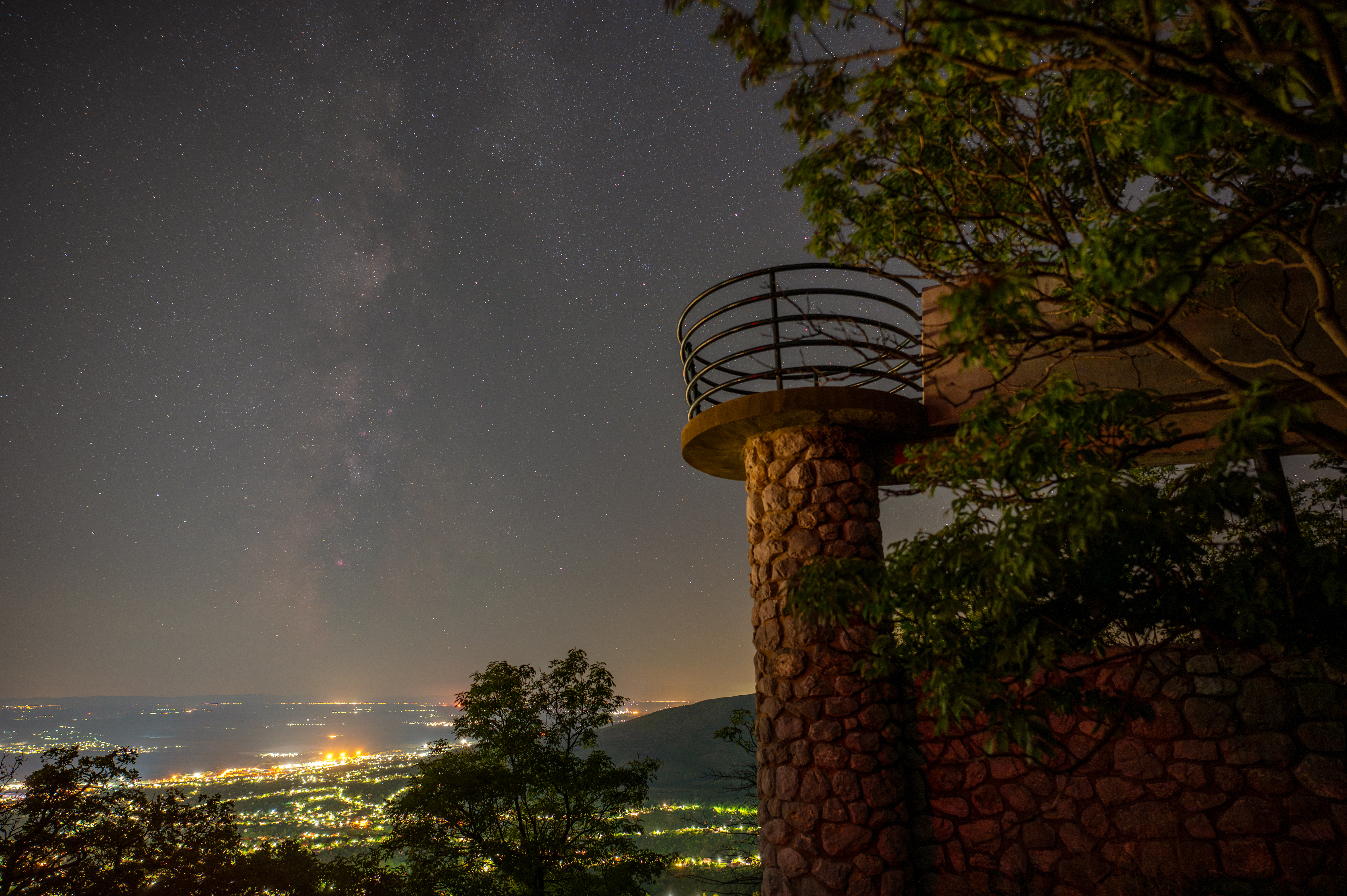2025. Augusztus és meg lett..., No de ne szaladjunk előre ennyire.Nagyon régóta tervezett fotózás volt.., igaz több ízben próbáltam már előtte, néhány éve is.Volt téli, tavaszi, nyári fotózás is.De igazán arra vártam amikor a kilátó és a Tejút együtt ágaskodnak egymás mellett úgy, hogy a centrum is látható és a város fényei is egy képen, ezt csak augusztusban lehetett összehozni így. A dolog érdekessége és ami valójában dob a kép értékén, hogy nem stack nem követett, hanem egyetlen expó eredménye. Sok kép készült sorozatba de szándékosan nem használtam fel őket, hogy látni lehessen mekkora dinamika tartomány van a képben. A város fényei mondhatni nem égtek ki és a csillagok is szépen látszanak sőt még Laguna,Trifid... is szépen látszanak.A képet szándékosan nem görbéztem szét és nem dolgoztam rajta órákat, nem ez volt a célom vele.