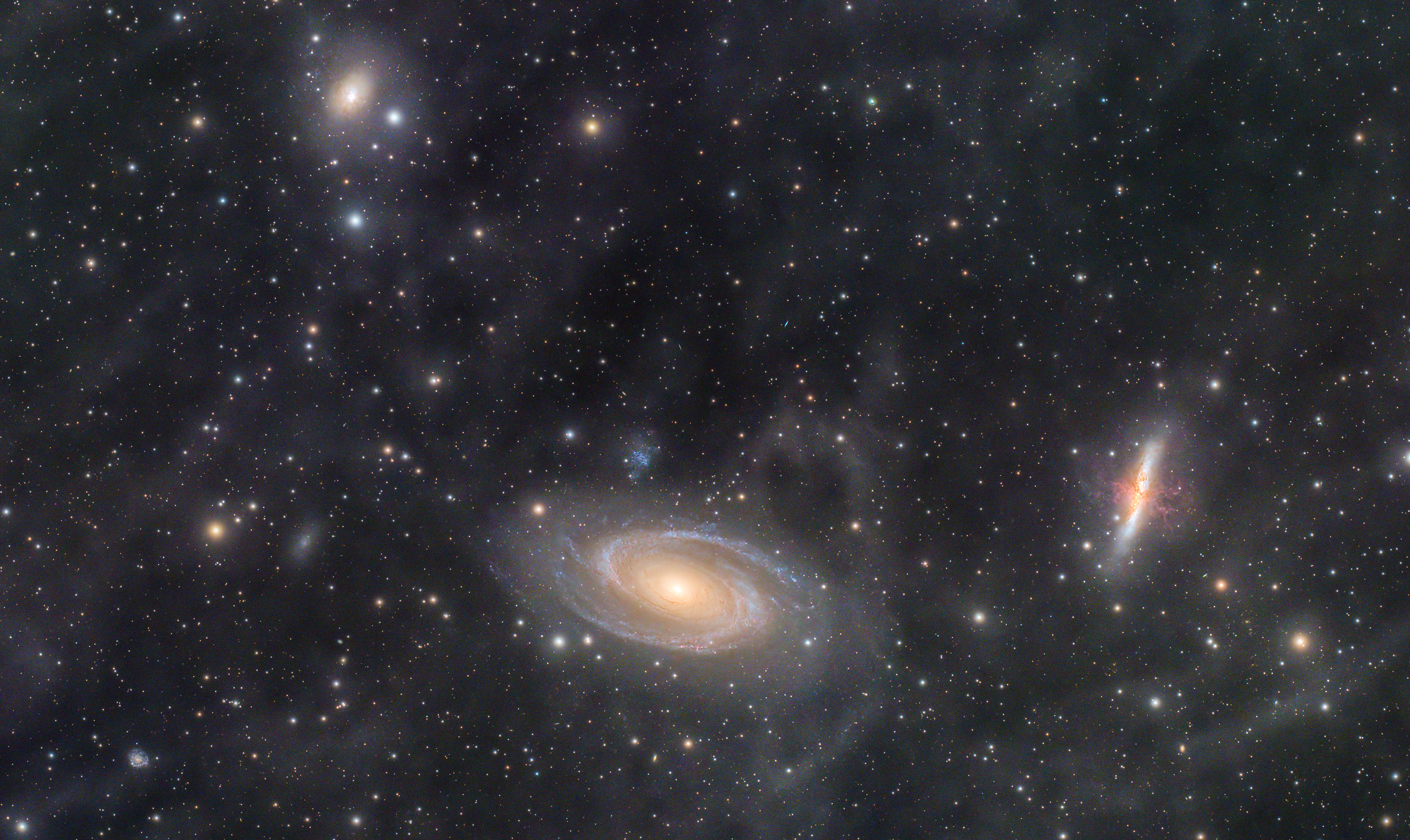 Háromszor futottam neki eddig a feldolgozásnak. Igazából csak azért töltöm fel, hátha megnyugszik a lelkem egy kicsit, és lesz kedvem negyedszer is nekiállni. Látom, hogy ezer sebből vérzik: nem értem például, miért zöldes a jobb oldala, vagy miért van néhány csillagnak két színe, mert feldolgozás során ezeket nem tapasztaltam. Azt hiszem, abba az irányba haladok, ahogy szeretném látni és láttatni a végeredményt, csak újra neki kell állnom az elejétől. Inkább most pihentetem; ha megjönnek az új szűrők, akkor még H-alpha is kerül bele.